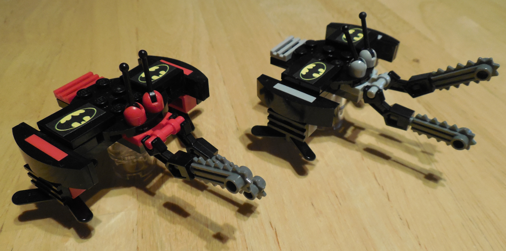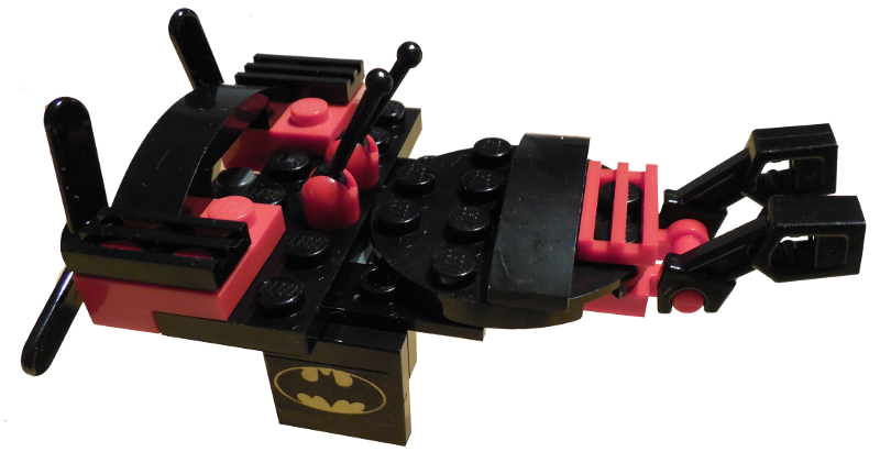 Designer's Notes: This build was created as a party favor for my oldest's 6th birthday party. The batsymbol stickers were created by finding an image online and printing it onto sticker paper. You could use the stickers from a Lego Batman set. I don't know of any regular Batman stickers that are the right size but those might exist.